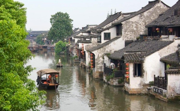 마을을 관통하는 1,700m 운하에 늘어선 전통 거리를 “싼리라오제 (三里老街 삼리노가 )”