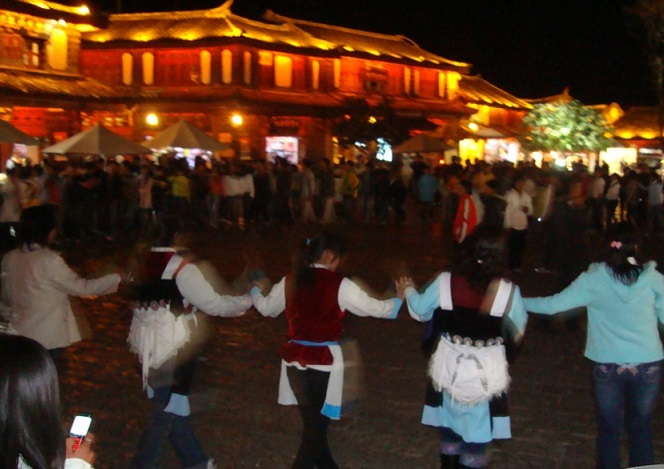 도시의 중심부는 쓰팡제 四方街(사방가) 라고 부르는데 광장에는 광장에는 쓰팡커잔 (四方客棧