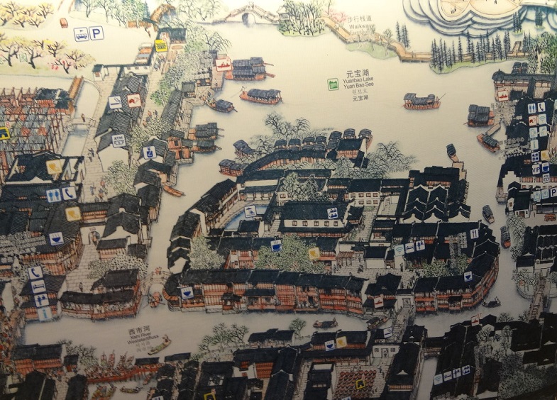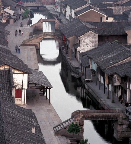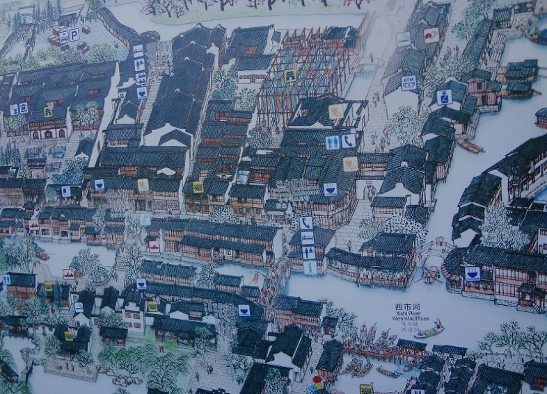 운하 양쪽을 따라가는 도로에는 또 골목길인 쓰판눙탕 (石板弄堂) 이 굴곡을 이루고 있어