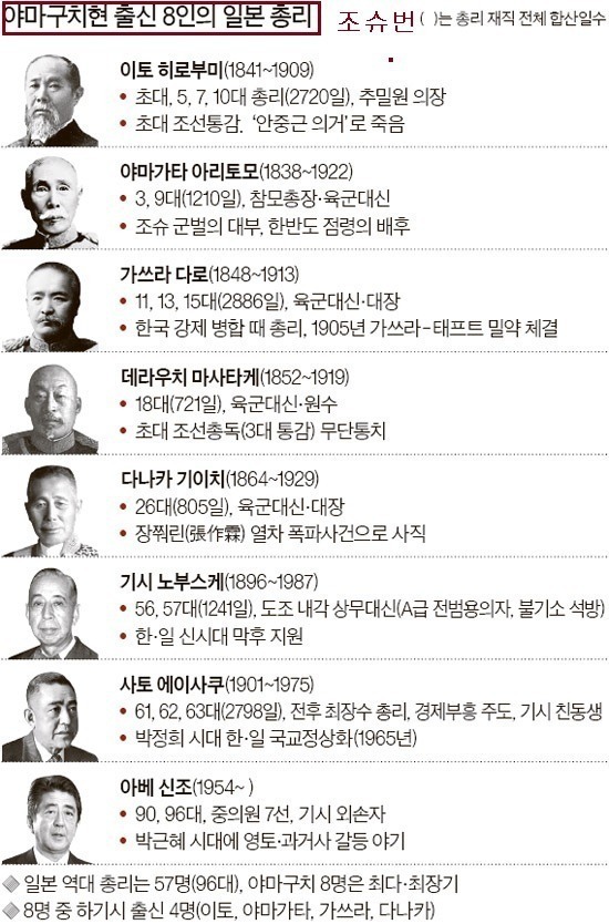 배출하지 못한 번이 70% 가 넘는데 조슈번은 무려 8명의 총리를 배출한데다가 1~4위 라?
