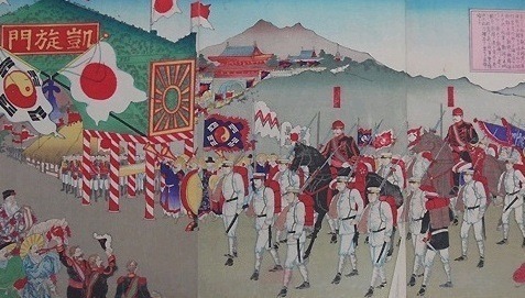 일본군은 서울 시내에서 엄청난 규모로 화려한 개선식 을 거행한 후에, 아베 신조 총리의