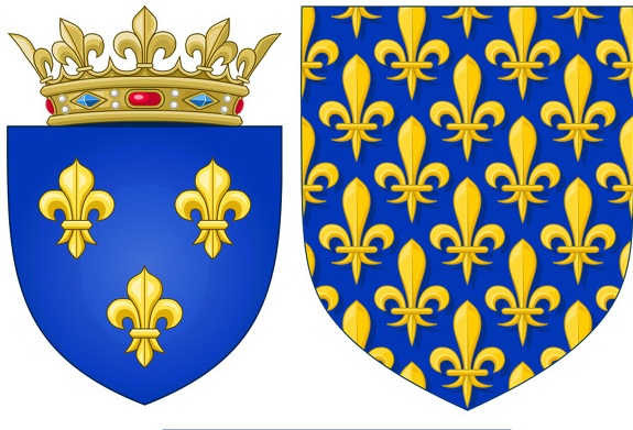왕국의 방어를 의미하는 백합 모양의 왕실 문장을 삼위일체를 뜻하는 세 송이로 정리하고 신성한