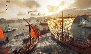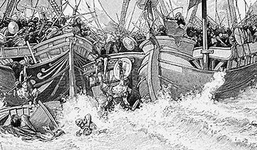 위치를 차지한채 한 부대는 정면에서, 다른 부대는 측면에서 공격하게 했는데 당시 해전은 적의 함선에
