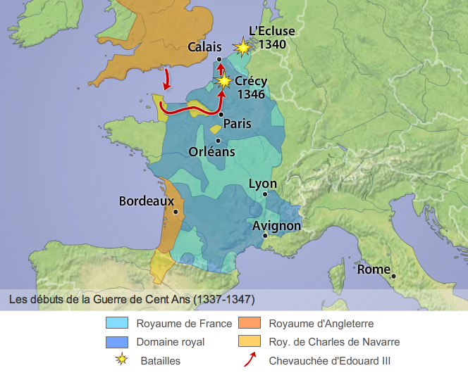 웨일즈공 에드워드가 이끄는 잉글랜드군에 연전연패했으니 특히 1347년 ~ 1350년 동안 유럽을