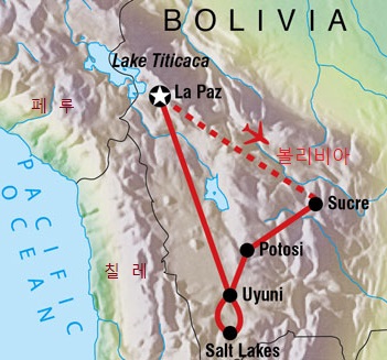 볼리비아는 과거 칠레와의 전쟁 때문에 해안선 쪽의 영토를 빼앗겨 내륙 국가가 돼버린 나라라서