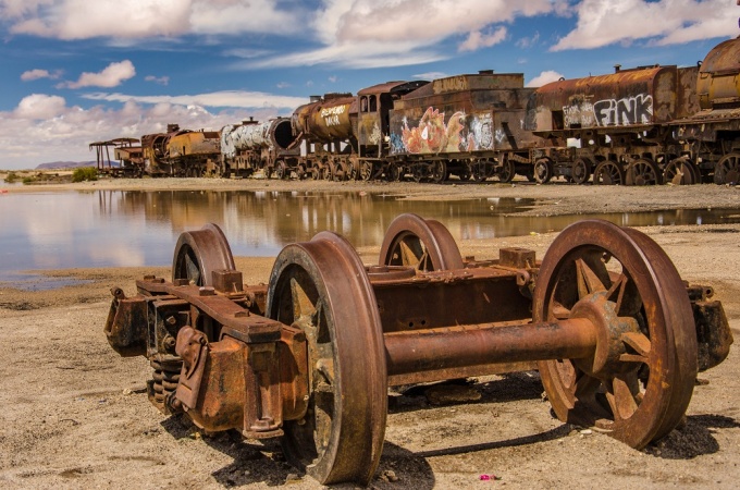 1940년대 광물 고갈로 인해 광산산업이 붕괴되면서 많은 기차들이 버려지게 되어 묘지가 생겨납니다.