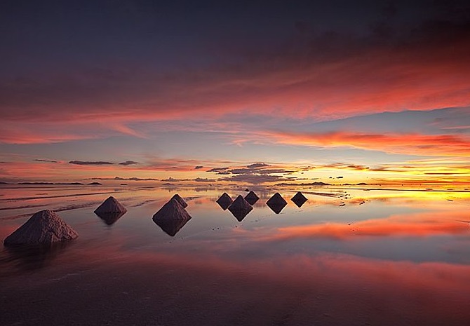 또 볼리비아에는 우유니 사막이 있으니 세계 최대의 소금 사막으로 오랜 세월에 걸쳐 호수의