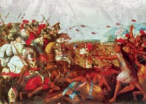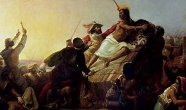 프란시스코 피사로가 이끄는 정복자들이 잉카 황제인 아타우알파를 패퇴시키고 제국을
