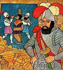 이끌고 잉카 제국을 정복했으며... 그들은 “비루”(Biru) 라고 알려진 전설상의 황금의 땅(페루)이