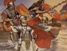 건너온 로마군은 흠뻑 젖은 상태였고 뱃속은 텅비어 있었던데 비해 새벽에 아침밥을 든든히 먹고