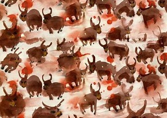 것으로.... 꼬리에 불을 붙이는 본래의 중국 화우계와는 달리 뿔에 햇불을 달면 소가 불을