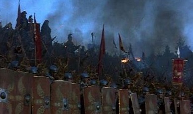 칼과 방패만 움켜지고 진영을 뛰쳐 나오니 벌서 저그이 기병은 로마 기병에 쫃기어 후퇴하는
