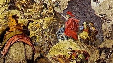 뿔에 마른 나뭇가지를 묶은후 밤에 나뭇가지에 불을 붙여 능선으로 몰아올리니 로마군은