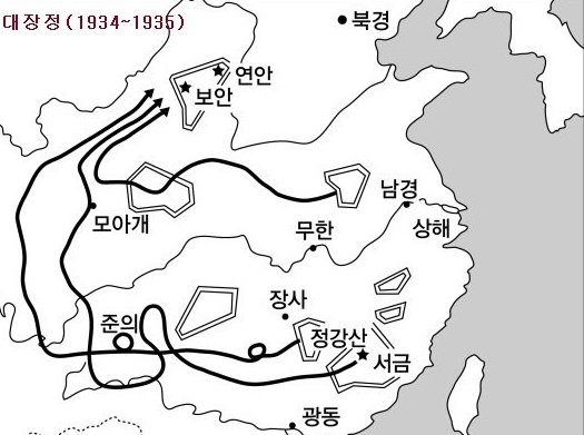 17개의 강을 건너서 1만 2,500km 를 초인적인 힘으로 행군해 싼시성에 1만명이 도달합니다.