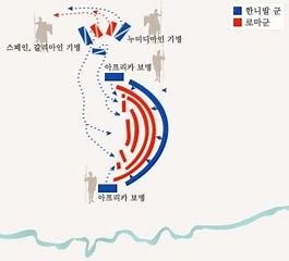 한니발은 가장 우수한 누미디아 기병을 양쪽 날개에 배치한후 중앙에 카르타고와 에스파니아