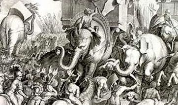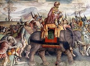 카르타고군은 몇 마리 안남은 코끼리는 추위에 달아나 버렸고.... 로마군 중무장 보병은 강한 전투력으로