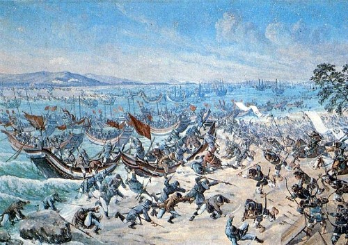 1274년 10월 3일 고려군을 앞잡이로 해서 3만 3천 몽골~고려 연합군 900척이 규슈를 침략하였고, 1281년