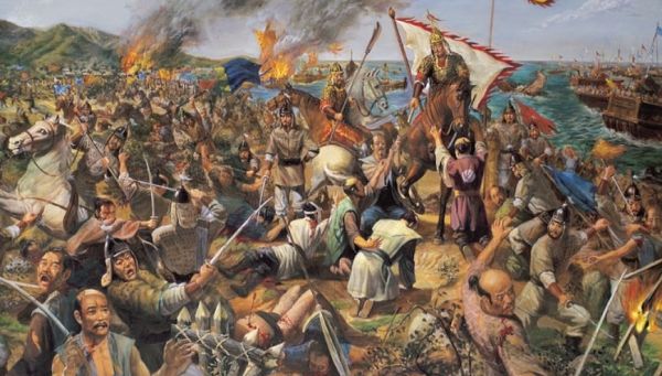 동로군과 남송(중국남부)군 10만에 군선 3천 5백척 강남군 두 부대가 역시 규슈를 침략했습니다.