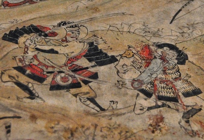 향하니 셋쓰의 천황(일왕)파 아카마쓰의 군대가 로쿠하라탐제 와 싸우면서 교토로 밀고들어 갑니다.