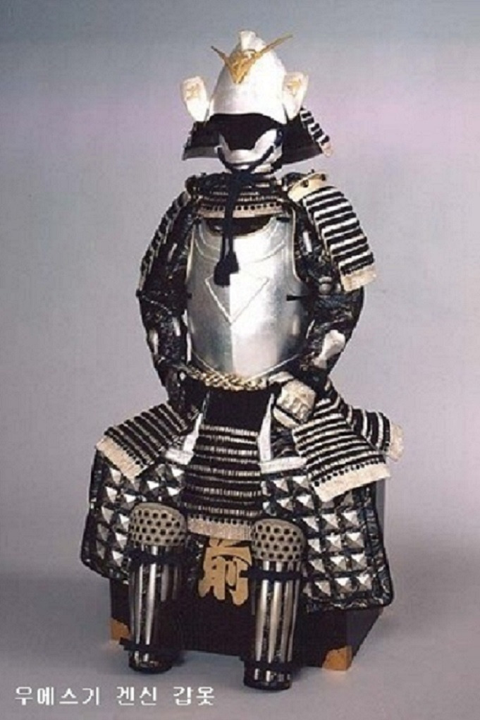 내리치자 다케다 신겐이 엉겁결에 지휘용 쇠 부채인 군배로 막았다고 하는데, 7군데가 갈라졌다고 합니다.