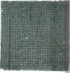 구양순의 아들인 구양통 (歐陽通) 이 글씨를 썼으며 묘지 뚜껑돌에 적힌 글은 '대당고특진