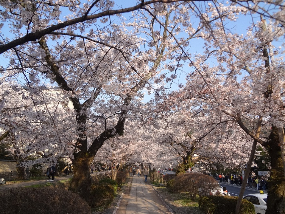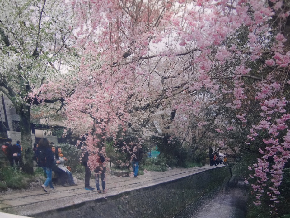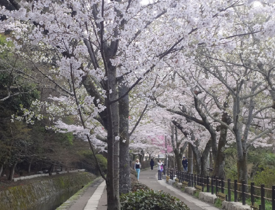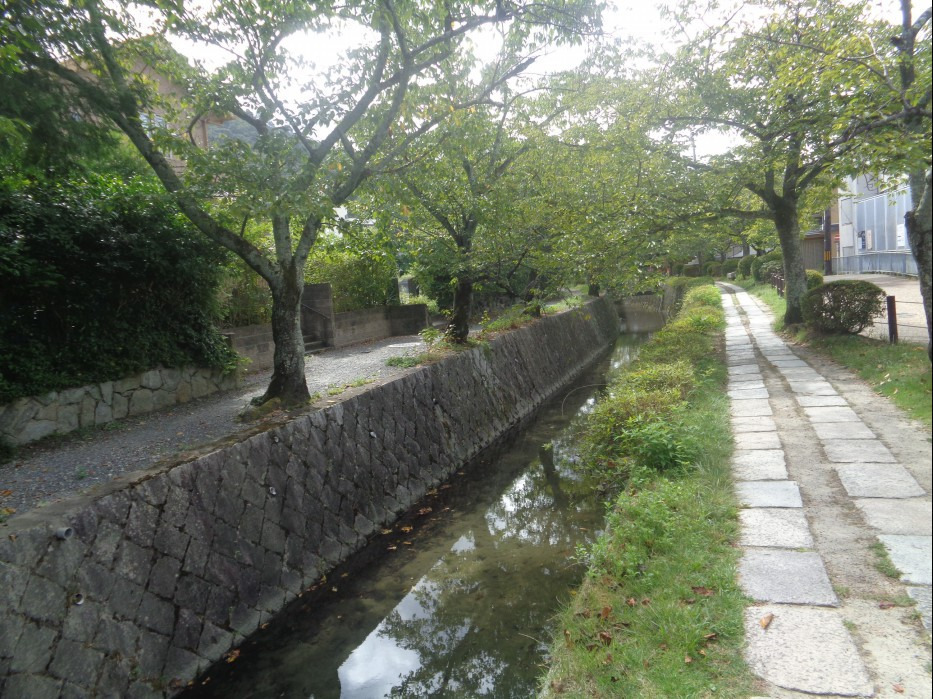을 걷는데...... 여긴 수로를 끼고 나무가 심어진 작은 길을 말하니, 교토 대학교