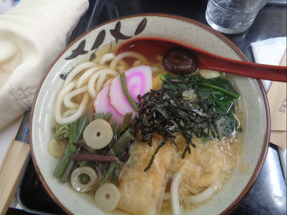 마침 휴업이라 되돌아오다가 어느 우동집으로 들어가 우동과 소바에 텐동 을 시킵니다.