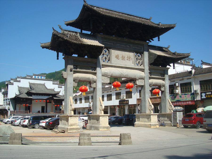 달려 샤오치 晓起 (효기) 에 도착하니 마을 입구에는 큰 패루 牌樓 가 보입니다.