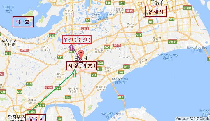 그런데 여기서 한가지 착각한게 있으니.... 우전 乌镇(오진) 은 행정구역상 자싱시 嘉兴市