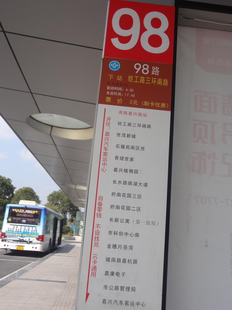 역 광장에서 사람들에게 우전 乌镇(오진) 으로 가는 버스를 물어보니 98路 버스 를