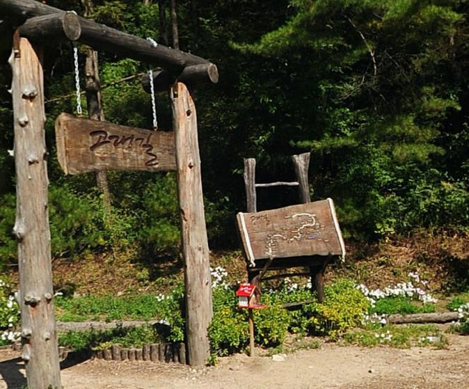 소설을 꾸며 놓았을 뿐 아니라 자연도 잘 가꾸어 놓았다. 물레방아(허 생원의 추억)을 만들어 놓은겸 연못도 만들어 놓은 것 같았는데 올챙이가 바글바글..... 그정도가 있는게 비정상인지 잘 모르겠지만 너무 많은 듯 했다. 천적이 없어보였다.. 개구리도 몇몇 보였는데 배가 주황색인 것을 보니 독 개구리였다. 만지는 것으로는 독이 없고 먹어야지 독이 퍼진다.