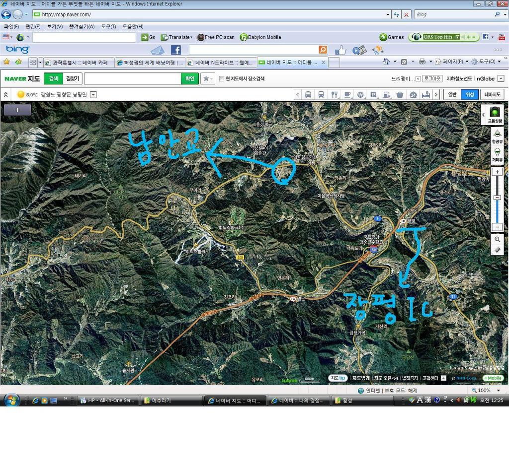 경춘고속도로를 타고 동쪽으로 계속 가다 산소에 들러서 인사를 드리고 다시 동쪽으로 갔다. 예정 숙소인 한화 휘닉스파크로 가는 도중 녹지원이라는 곳에서 더덕정식을 점심으로 먹고(더덕 탕수육 빼고 맛은 없었다..../만약 식사를 할거면 예약이 필수입니다. 안하고 가면 시간 잡아먹는 괴물이 강림....)