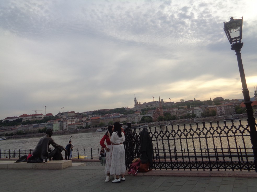 (도나우) 강변으로 가서 건너편 부다지구의 왕궁 이며 유람선들을 바라보며 석양에 일몰 을 구경합니다.