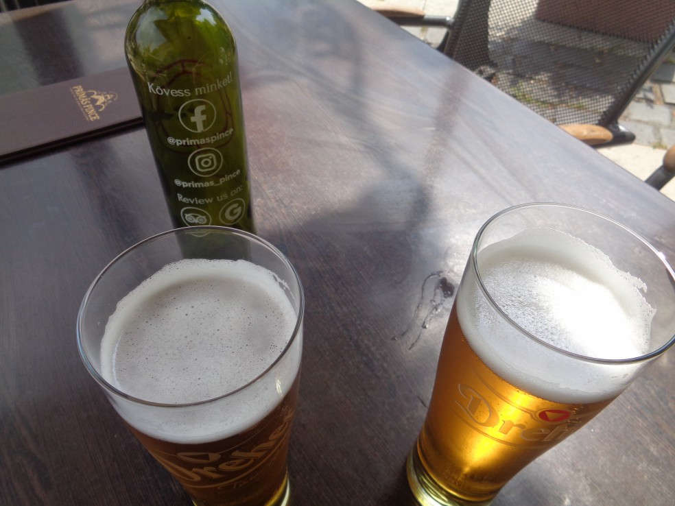 우린 식탁에 앉지는 않고 그냥 가게에서 생맥주 를 한잔 시켜서는 밖에 내놓은 탁자