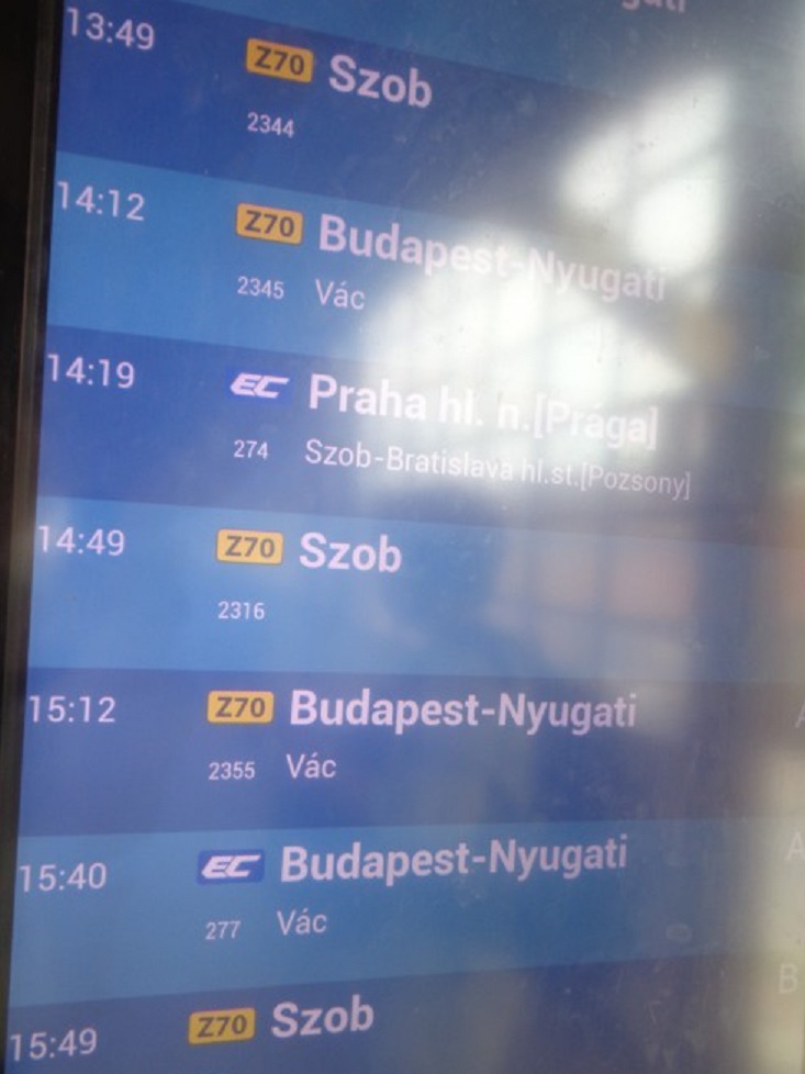 기차가 도착했는데 보니 이 기차는 스좁 Szob 행이라 적혀 있으니 그럼 헝가리 국경 까지 가는 기차라 그냥