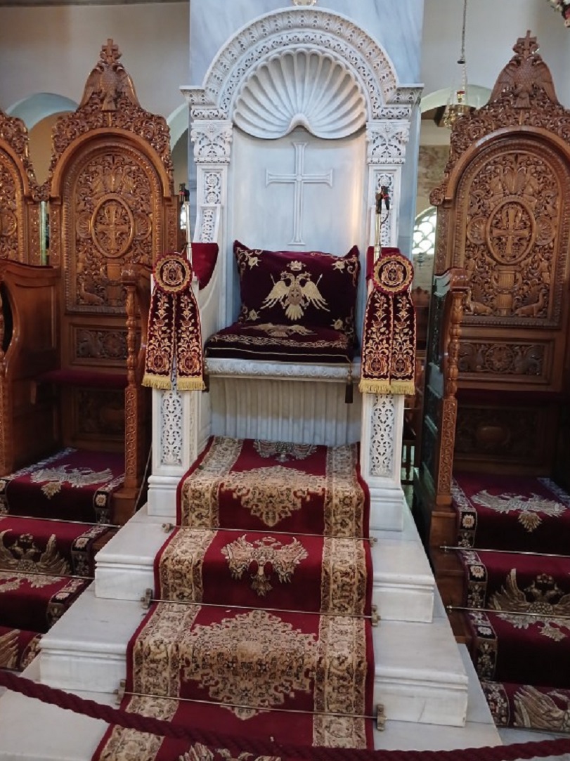 나무십자가 아래 돌로 된 무덤 덮개에 그리스어로 씌어진 묘비명 “나는 아무것도