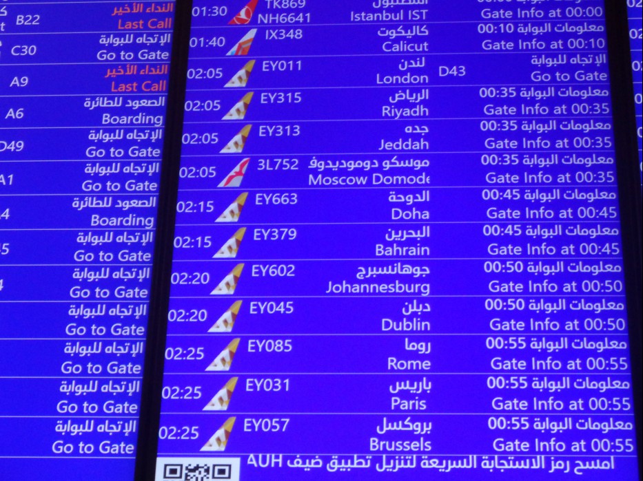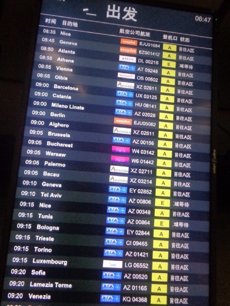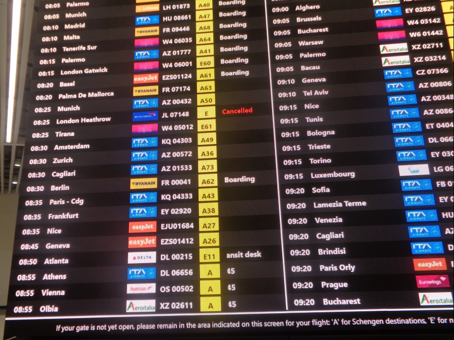 하는가 싶어 전광판을 보니..... EY 2806 (ITA AIRWAYS ) 기는 A 구역에서 출발한다고 나옵니다.