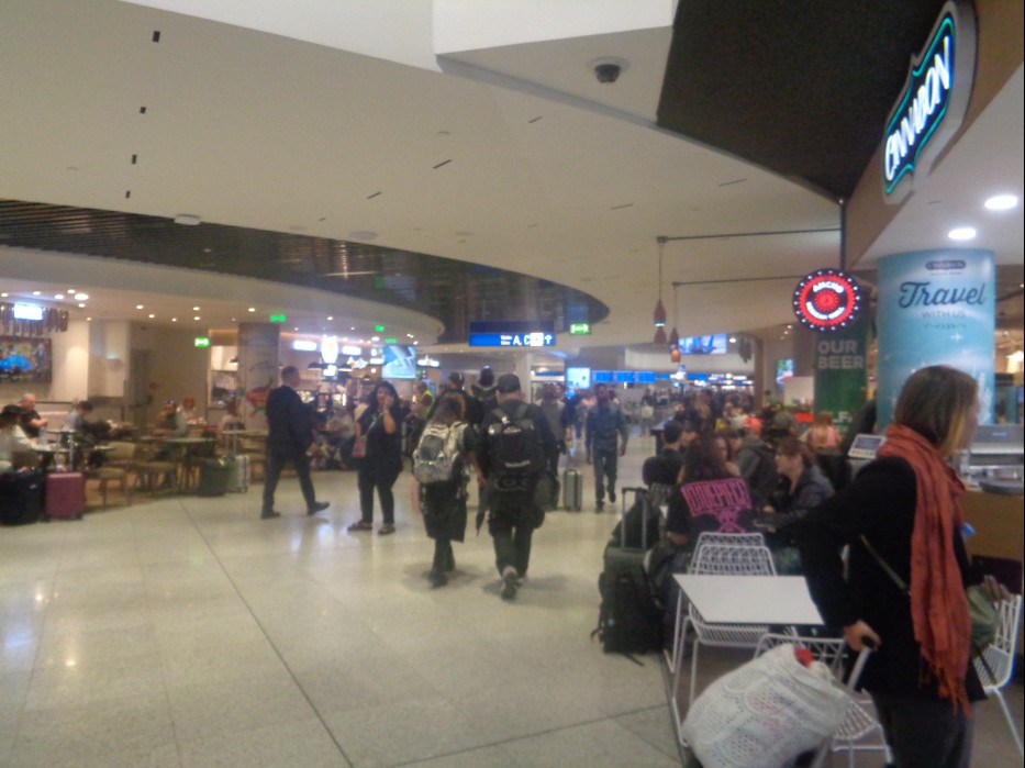 공항 안에서 A 구역을 찾아 한참 걸어 건물 끝까지 가서 도착하니 입구에 길게 줄을 서서 보안검사를 받으니