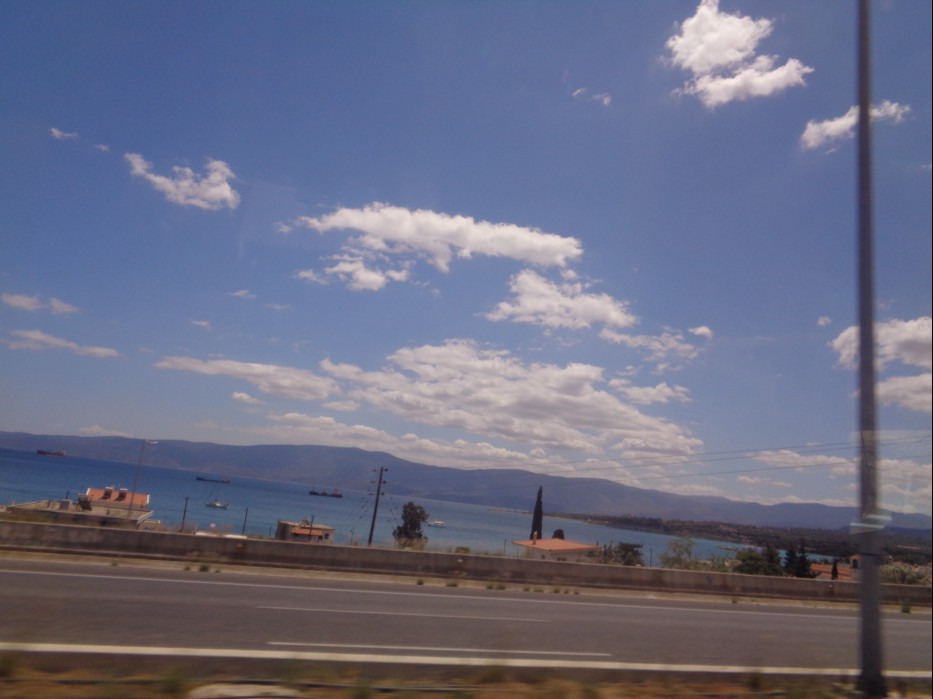 12시 42분에 아테네를 출발한 버스는 시내를 빠져나가서는 서남쪽으로 달리는데.... 왼쪽에