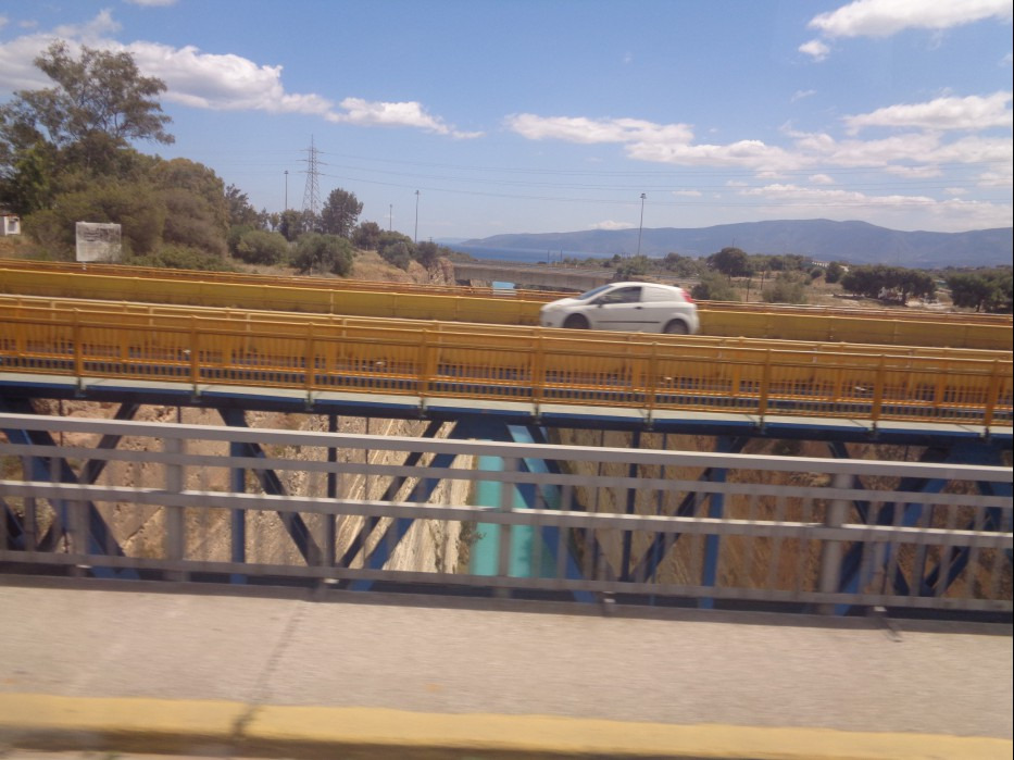 바다가 보이더니 그후 몇 개의 터널을 지나니 감작스럽게 코린트 운하가 나타납니다?