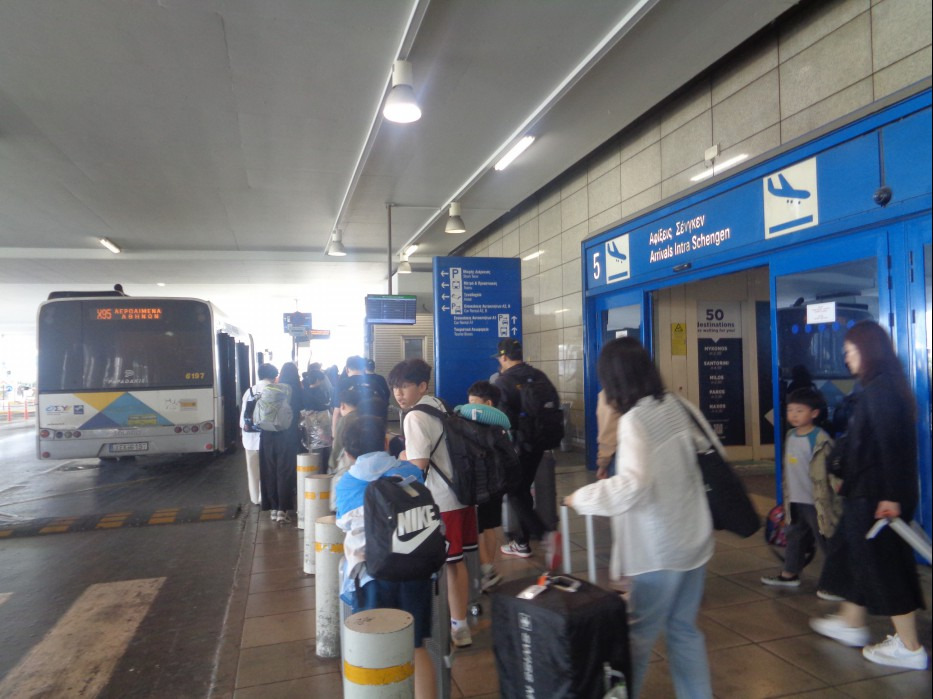 El. Venizelos 에 도착하는데 그래도 내릴 때 쯤 되니 각 조장 학생들이 휴대폰 잘 챙기라고 독려를 합니다?