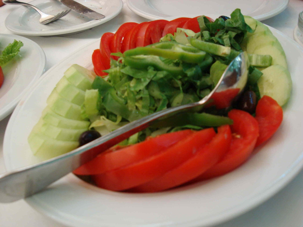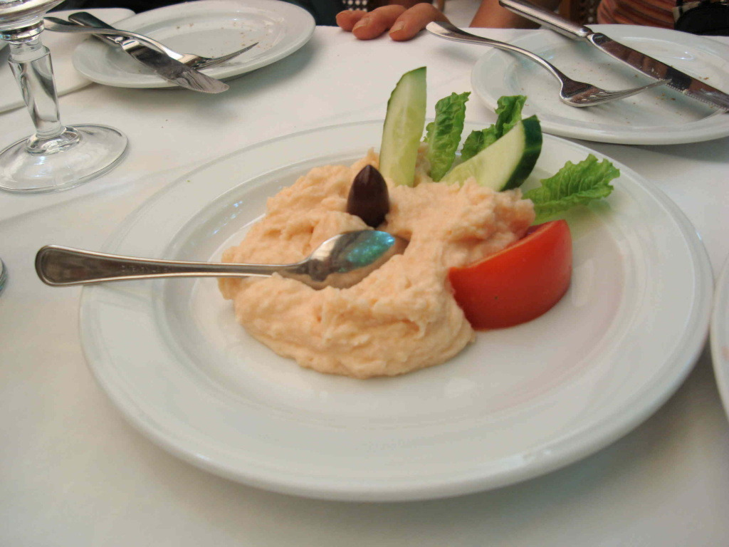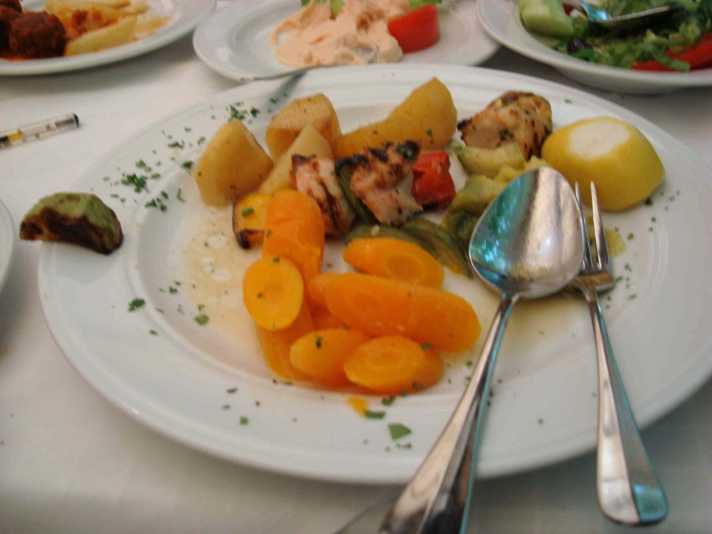 닭고기나 돼지고기를 꼬치에 꽂아 숯불에 구운 요리 수블라키를 시켜 점심을 먹습니다.