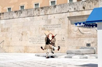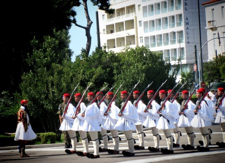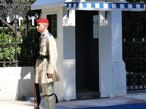 비석 옆에는 에브조나스 라는 민속의상을 입은 위병들 이 서 있는데.....