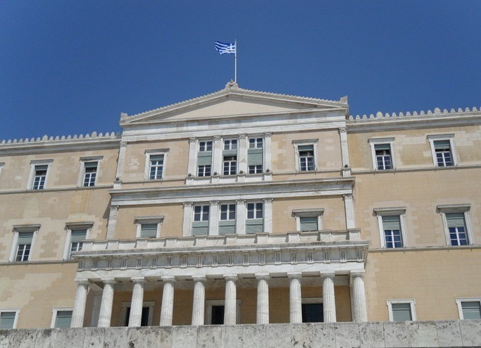 그러고는 도리스식 대리석 기둥이 서있는 아름다운 건물인 국회의사당 을 보는데,