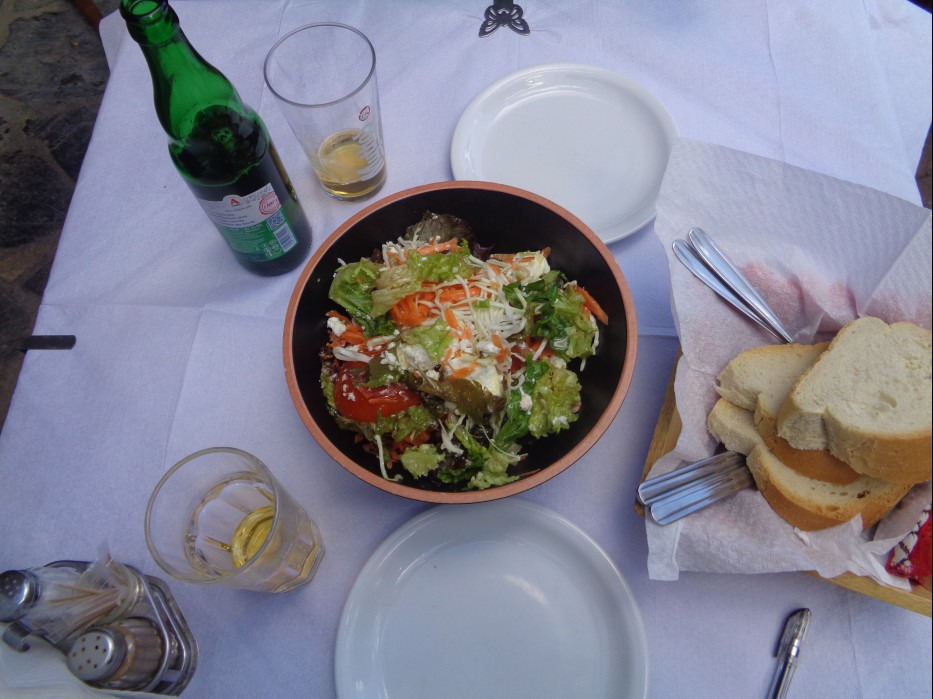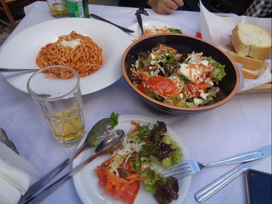 샐러드와 파스타에 맥주 2잔으로 점심을 먹는데, 16.5 유로이니 아테네나 유명 관광지에 비해 너무나도
