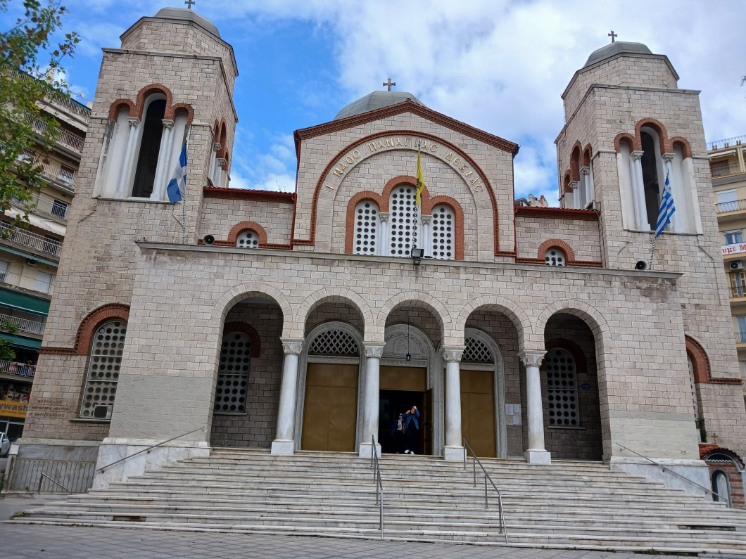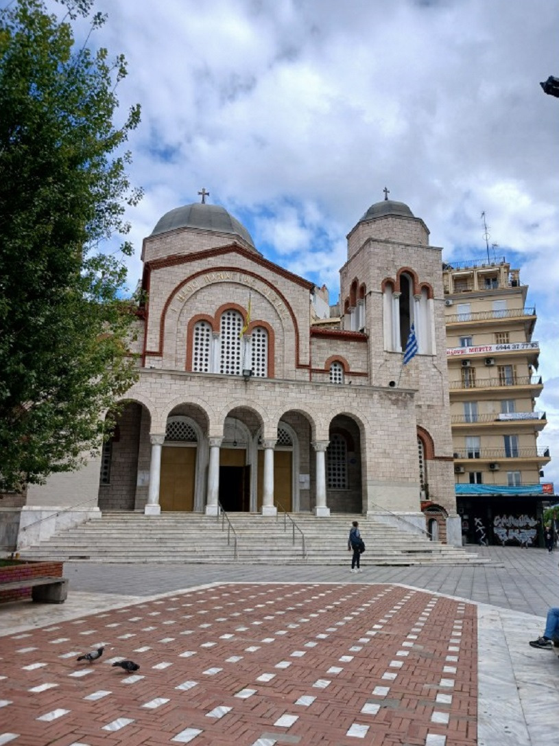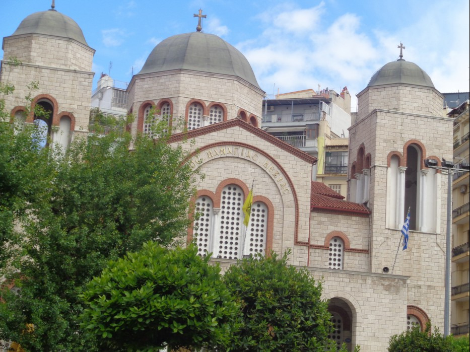 그러고는 갈레리우스 개선문에서 동쪽에 있는 큰 정교회 아요스 디미트리오스 성당 (Agiou