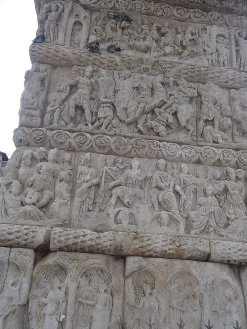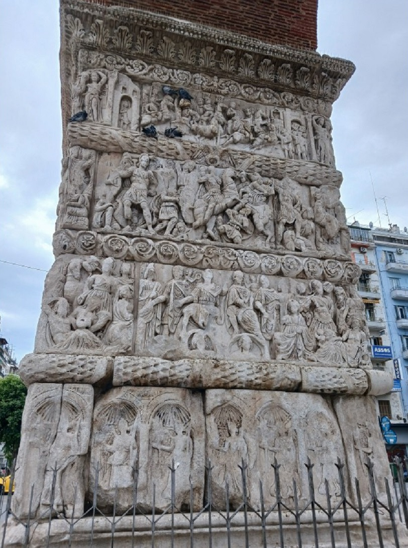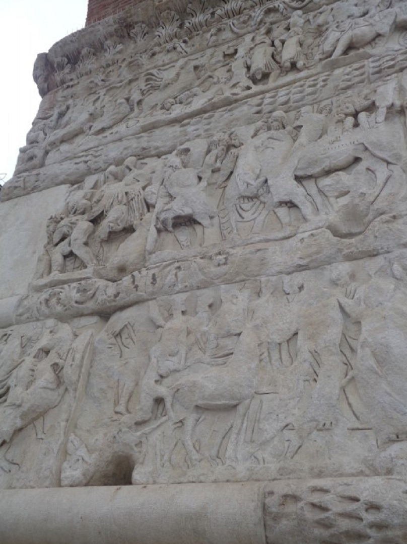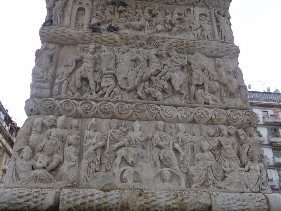 기둥의 대리석 부조는 전쟁을 이끌던 갈레리우스 황제의 영웅적인 모습을 주로 담고 있는데.... 비록