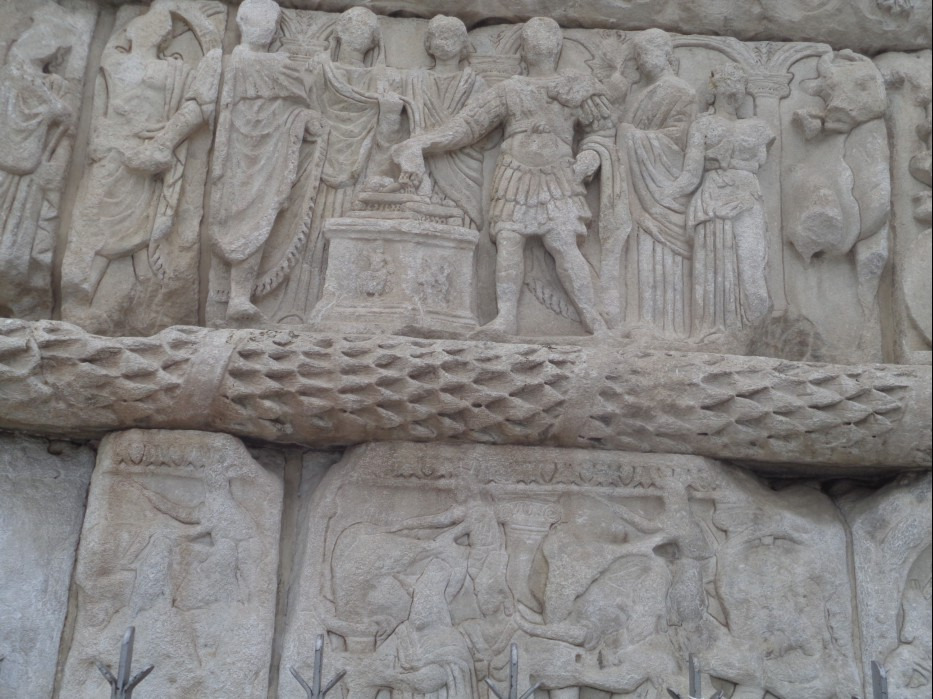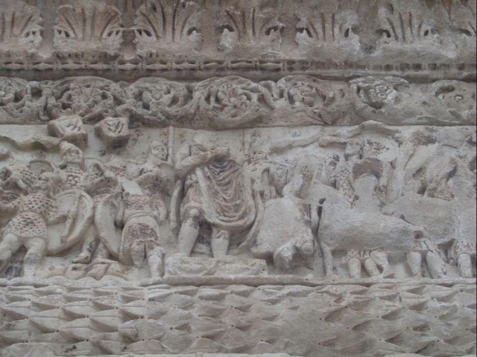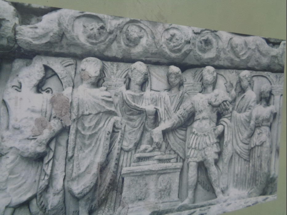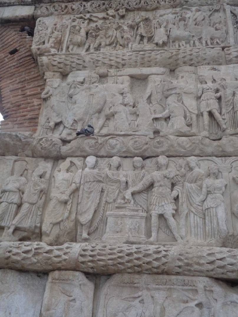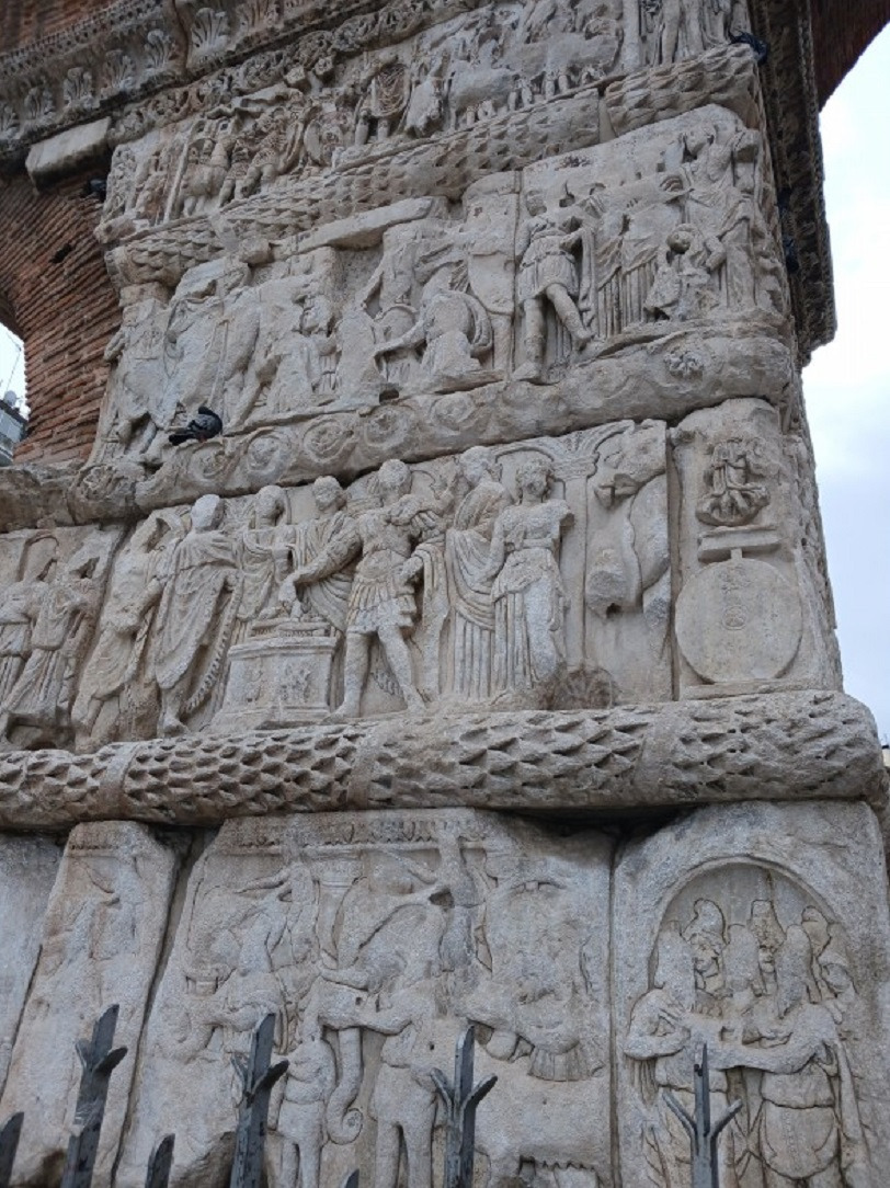 기둥의 대리석 부조는 전쟁을 이끌던 갈레리우스 황제의 영웅적인 모습을 주로 담고 있는데.... 비록