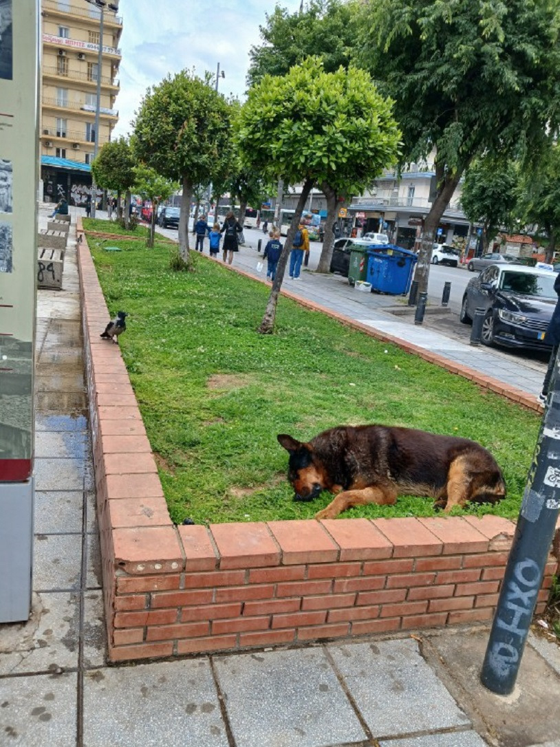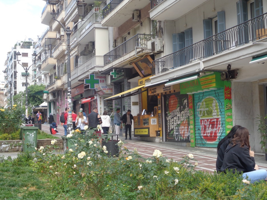 택시를 타지 않고 배낭을 메고 Monastiriou 대로를 따라 20여분을 걸어서