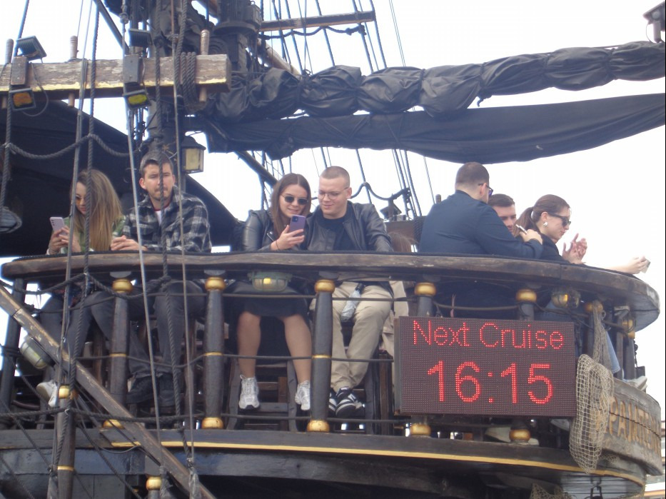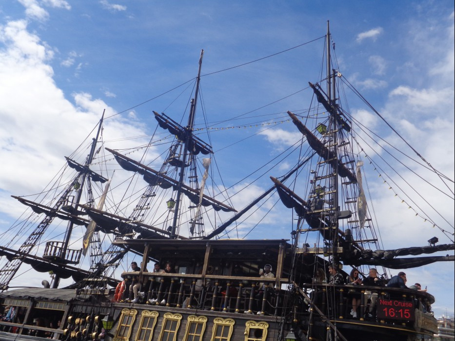 바닷가에는 특이하게도 근세 시대의 유물인 해적선이 한척 정박해 있는데..... 배 위에는 보니 많은 사람들이
